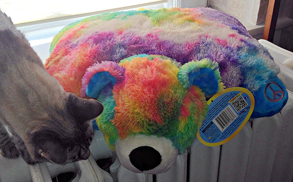 I have a Pillow Pet. I asked for a Pillow Pet for Christmas. The name of my Pillow Pet is Peaceful Bear. Peaceful Bear is a rainbow of colors with a peace symbol on his paw. He was a gift from my Granddaughter and Grandson.